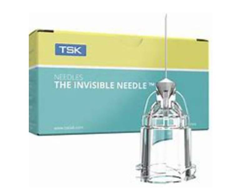 Technology advancements have made it possible to make this needle 33% thinner than a 30G needle (used for insulin syringes) and 14% thinner than the TSK 33G needle.
