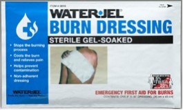 Water-Jel Burn Dressings provide fast, one-step relief for emergency first aid when someone has been burned. The dressing stops burn progression and cools the skin, relieves pain and protects against airborne contamination.