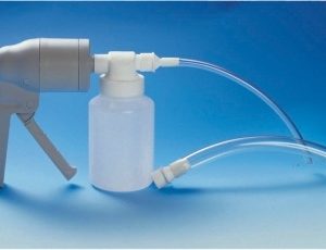 This simple, compact suction device can be used in emergency situations to extract fluids from a patient. Includes a removable 300ml capacity container