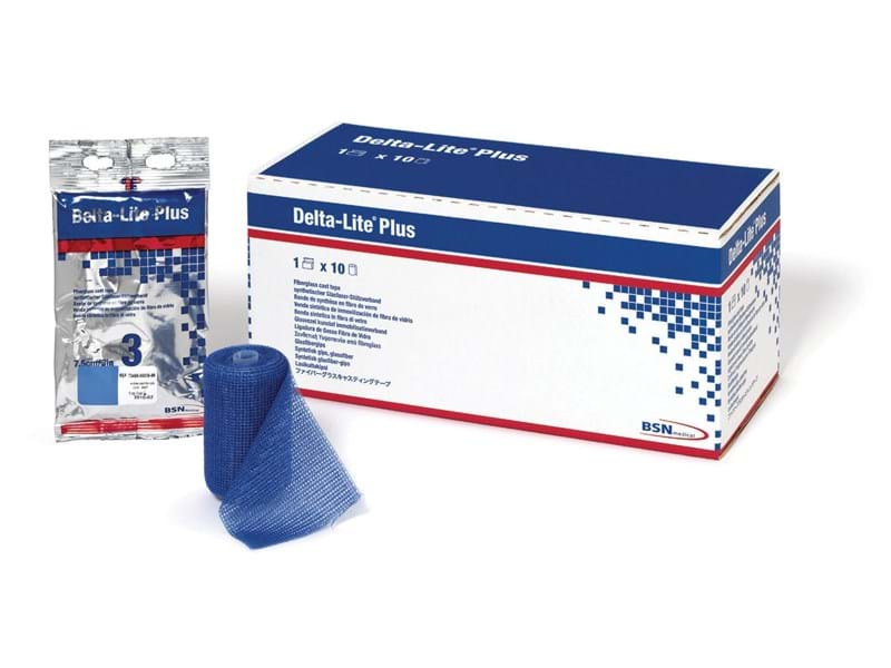 Delta-Lite Plus is a fibreglass cast tape that combines a fibreglass substrate and advanced water activated polyurethane resin system which provides tack free properties. The tack free properties allow ease of application and moulding using standard examination gloves. No longer required are the 'purple' gloves.