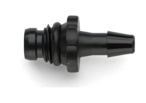 Tri-Purpose Sphygmomanometer Connector. Plastic male M9 thread with female luer lock and female luer slip inside, 5/32'' (4mm) hose barb