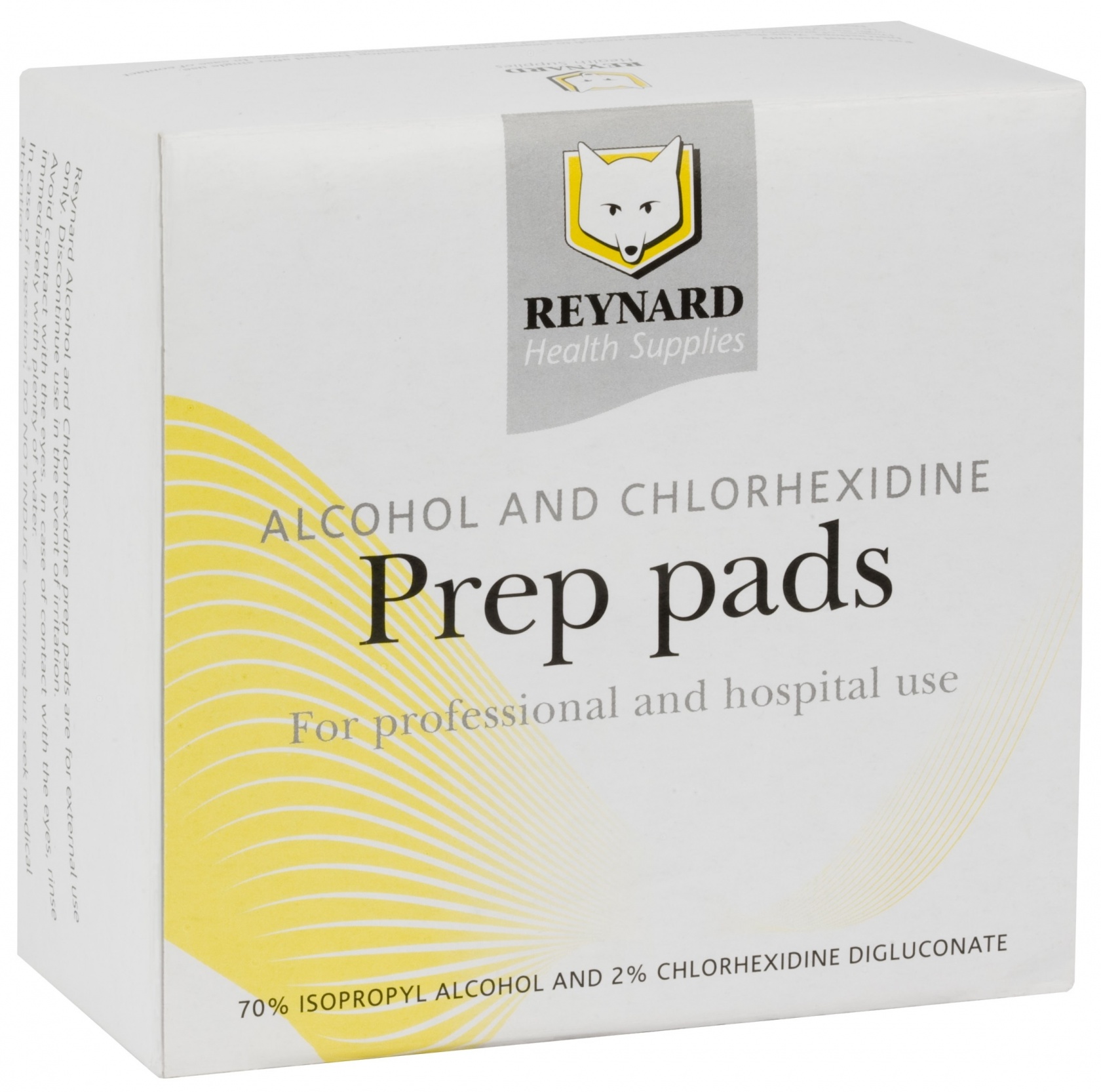 Reynard Prep Pads contain 70% Isopropyl alcohol and 2% Chlorhexidine and are suitable for professional and hospital use. Larger than competing products and containing high levels of moisture, they cover larger areas and offer a more effective pre-injection topical cleansing.