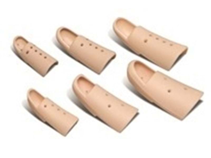 Designed to protect and support the distal joint of the finger in extension while permitting unrestricted movement of the proximal interphalangeal joint. Sold individually and come either clear or skin tone. Also known as Mallet finger splints.
