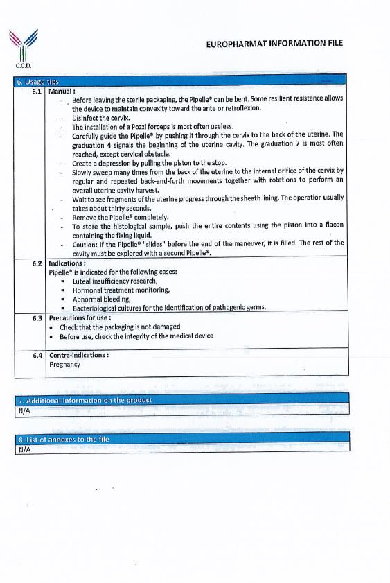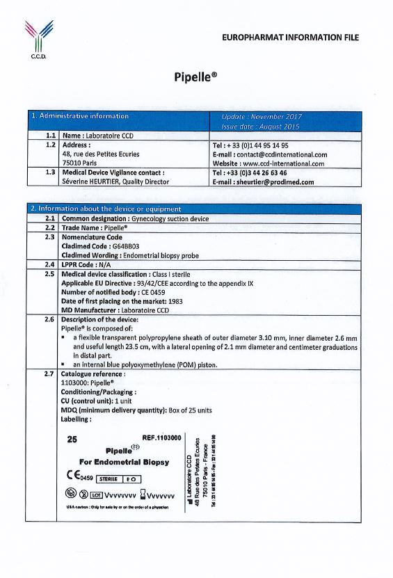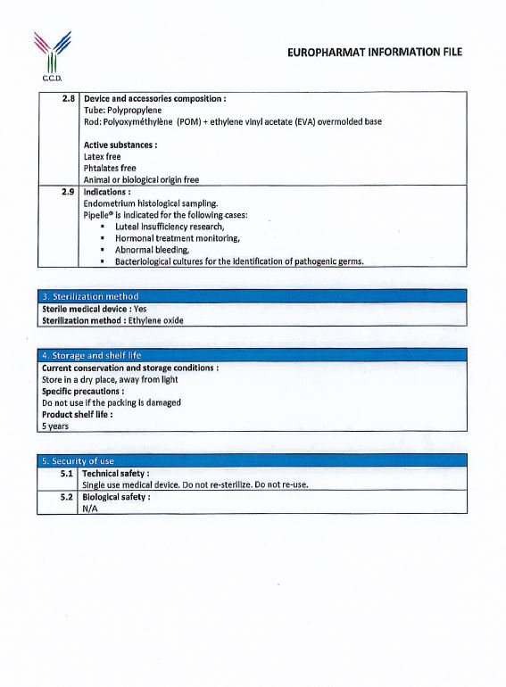 The body and the plunger of the device, identical to the original Pipelle de Cornier®, are used for the histology specimen.