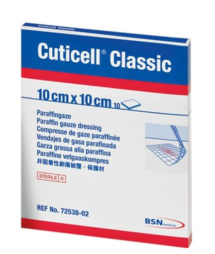 Cuticell Classic Sterile Paraffin-Impregnated Dressing 10cm x 10cm