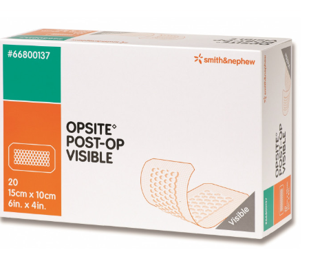 OPSITE Post-Op Visible is a waterproof, bacteria proof dressing with a see-through absorbent pad