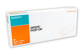 This post-operative dressing combines the advantages of OpSite film with an absorbent dressing pad to provide a superior dressing for many types of wound.