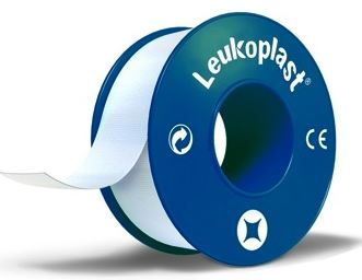 Leukoplast Waterproof is a white tape with zinc oxide adhesive.
